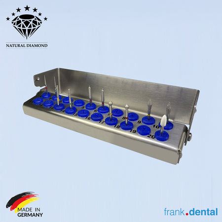 Frank-Zahnbohrer werden in Deutschland von Frank Dental hergestellt, einem Boutique-Hersteller, der für sein Engagement für Handwerkskunst und Präzision bekannt ist. Alle Diamantbohrer werden einzeln von Hand gefertigt, wodurch höchste Qualitäts- und Leistungsstandards gewährleistet werden. Anders als andere Bohrer ist jeder Frank-Zahnbohrer mit natürlichem Diamant beschichtet. Diese einzigartige Eigenschaft verbessert nicht nur die Schneidleistung, sondern verhindert auch, dass die Diamanten mit der Zeit stumpf werden, und gewährleistet so ein gleichbleibend hohes Leistungsniveau. Das außergewöhnliche Design ermöglicht es den Bohrern, ihre Schneidqualität während ihrer gesamten Verwendung beizubehalten, vom ersten bis zum letzten.