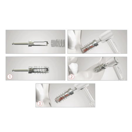 Um die Entnahme von autogenem Knochen bei regenerativen Eingriffen zu erleichtern, ist der Bohrer mit drei Klingen eine gute Option. Seine Unterschiede liegen im Vorhandensein von drei Klingen, die für eine höhere Effizienz bei der Entnahme von autogenem Knochen sowie für weniger Vibrationen und eine höhere Präzision während des Entnahmevorgangs im Spenderbett sorgen. Die Verbindung von autogenem Knochen mit Knochenersatzmaterial verbessert die klinischen Ergebnisse von Transplantationsverfahren aufgrund des osteogenen und osteoinduktiven Potenzials des autogenen Knochens, das mit dem osteokonduktiven Potenzial des Knochenersatzmaterials verbunden ist. Machen Sie Ihren Eingriff zur autogenen Knochenentnahme vorhersehbarer.